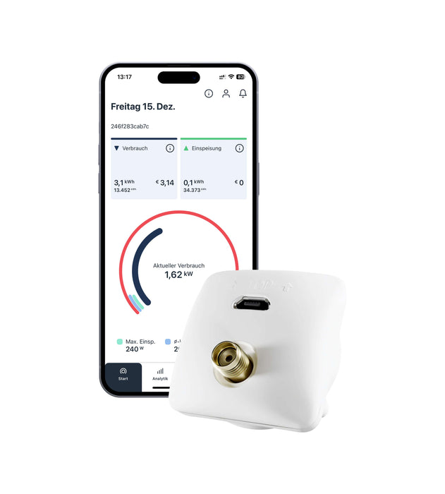- Optimiere deinen PV-Strom-Eigenverbrauch, indem du neben dem Stromverbrauch auch deine Erzeugung mit powerfox im Blick hast (auch für Balkon-PV-Anlagen)