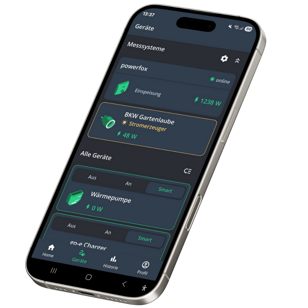 Zusätzlich kannst Du mit clever-PV eine Vielzahl von Geräten (Wallbox, E-Auto, Batteriespeicher, Wechselrichter, Wärmepumpen) verbrauchsoptimiert steuern.